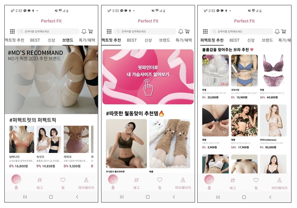 ‘퍼펙트핏’ 앱 의 브랜드관은 언더웨어 전문가 6인과 MD들의 심사를 거쳐 엄선된 프리미엄 언더웨어 브랜드들이 입점해 있어, 기존 산발적으로 노출되던 상품들을 브랜드의 스토리와 상품별 특징이 한 눈에 들어올 수 있도록 구별시켰다. 또한, 접하기 어려웠던 국내 다수의 디자이너 브랜드가 입점 되어 있어, 사용자 AI추천 과정에서 상품에 대한 구매 전환 율을 높이고, MZ세대의 소비 트렌드를 제대로 관통했다는 평가를 받고 있다.