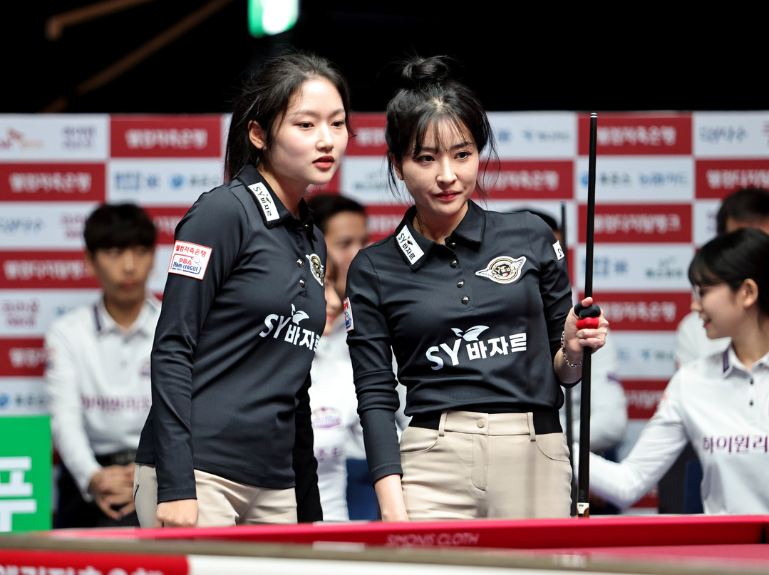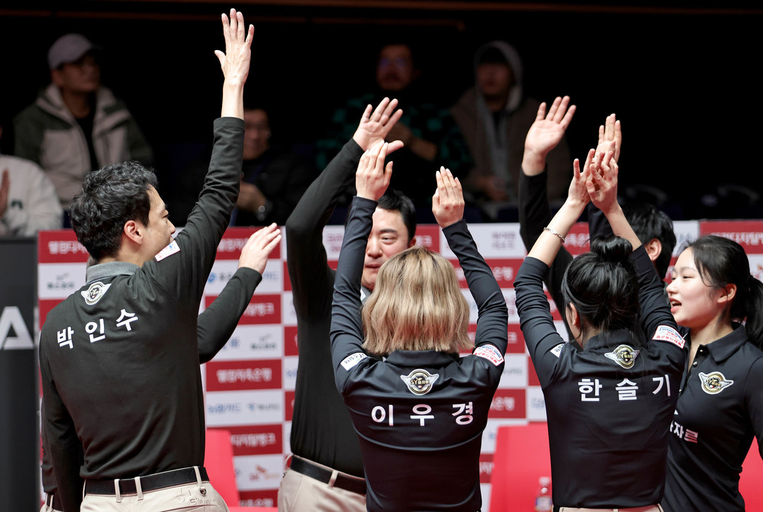 NH농협카드도 쉽게 물러서지 않았다. 2세트서 곧바로 반격했다. 김민아-김보미가 백민주-임정숙을 9:7(7이닝)로 제압하고 균형을 맞춘 데 이어, 3세트서는 조재호가 하이런 7점을 앞세워 다비드 마르티네스(스페인)를 15:11(5이닝)로 꺾고 경기를 뒤집었다.