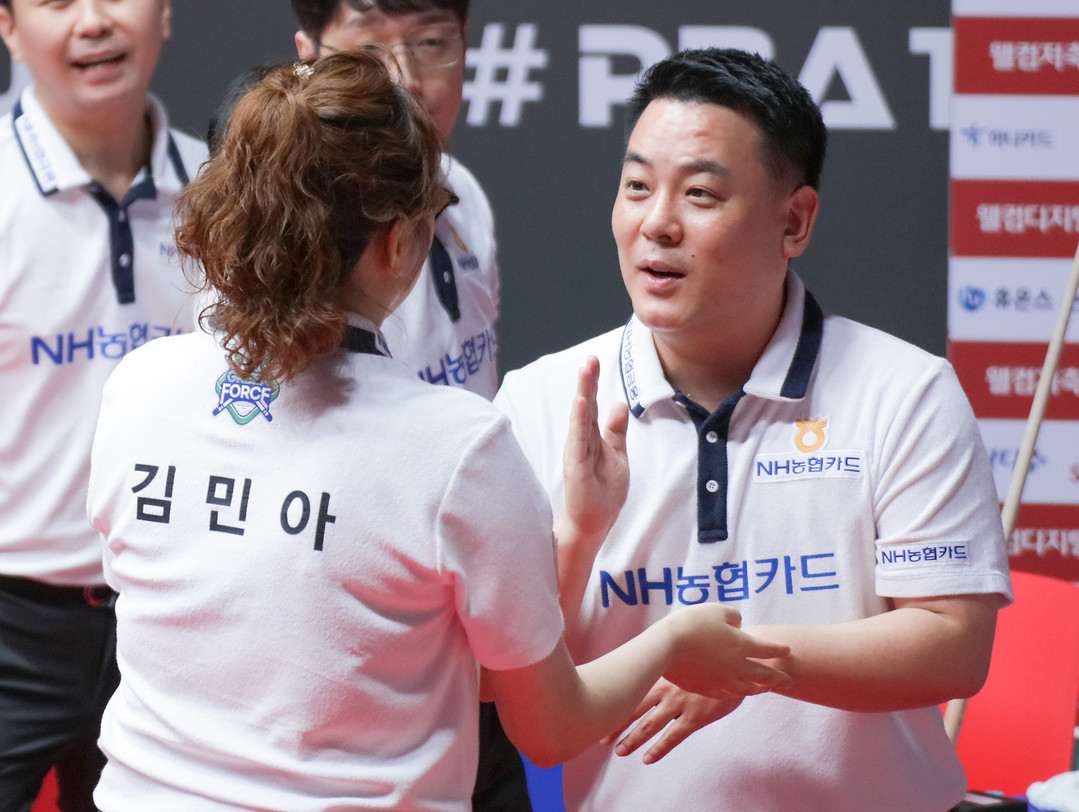 NH농협카드는 3세트서 마민캄(베트남)이 에디 레펜스(벨기에)에 13:15(11이닝)로 패배하며 한 세트를 내줬으나 4세트서 오성욱-김보미가 레펜스-히다를 9:8(8이닝)로 제압했다. 5세트서는 조재호가 강동궁에 11:2(3이닝) 패하며 2:3으로 추격을 허용했으나 6세트서 김민아가 강지은을 9:4(7이닝)로 물리치고 경기를 승리로 마무리했다.