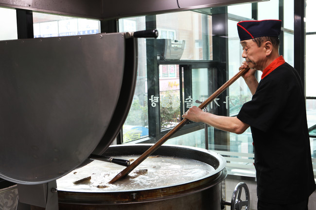 “예전 무쇠로 만든 가마솥을 현대식으로 개량했습니다. 외장은 녹이 나지 않는 스테인리스로 속은 옛날 방식 그대로인 주물로 된 가마솥으로 만들었습니다. 그래서 예전의 맛을 재현할 수 있고, 청결함을 유지해 최상의 설렁탕이 나올 수 있도록 제작되었습니다.”