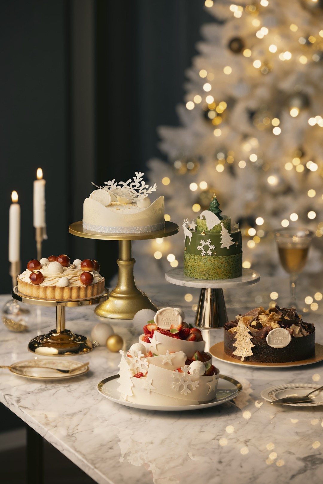 부쉬 드 노엘 이외에도 설향 딸기, 녹차, 헤이즐넛 등 다채로운 맛으로 크리스마스 무드를 전하는 페스티브 케이크 5종으로 프랑스 홀리데이 감성을 더한다. 제철 설향 딸기가 설산 위에 쌓여 있는 듯한 레이어 케이크 ‘갸또 드 노엘(Gateaux de Noël)’, 바닐라빈 가나슈로 새하얀 눈송이를 표현한 ‘라네즈 바닐(La neige Vanille)’, 헤이즐넛의 진한 풍미가 돋보이는 ‘갸또 누아제트(Gateaux Noisette)’, 녹차 시트와 카카오 닙스로 크리스마스 트리를 표현한 ‘사팽 오 테(Sapin au Thé)’와 왕관처럼 생긴 독특한 모양 덕분에 ‘여왕의 디저트’라 불리는 케이크로, 바나나 캐러멜 시트 위를 캐러멜 슈로 장식한 ‘생토노레(Saint-Honoré)’가 크리스마스 분위기를 고조시킨다.