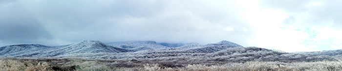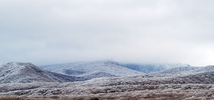 [스마트시니어뉴스=오수정 기자] 제주 산간지역에 밤새 눈이 왔다. 한라산 1100도로 휴게소 인근에는 온통 하얀 바다다. 한라산 눈조릿대 호로산에 매서운 겨울바람이 불면 한라산 1100도로 숲속 조릿대는 눈솜으로 갈아입고 잎을 감싸 온기를 나누려는가보다.
