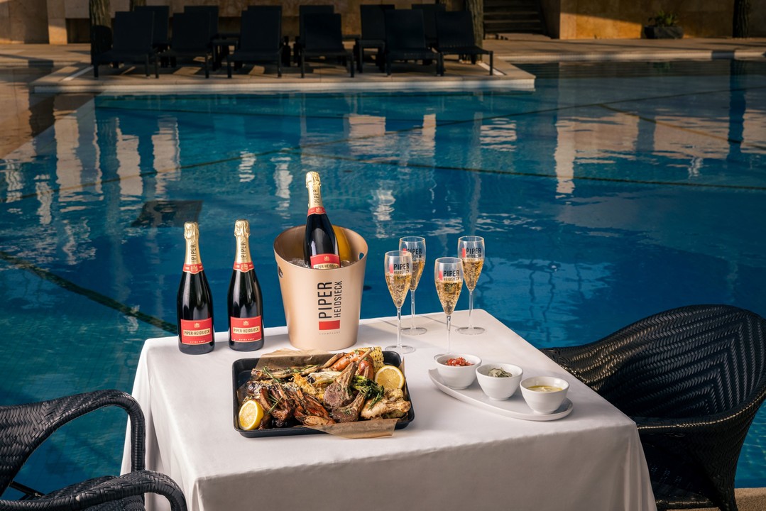 이번 ‘오아시스 풀사이드 버블 나잇’ 프로모션에서는 뛰어난 밸런스를 자랑하는 샴페인 ‘파이퍼 하이직, 뀌베 브뤼’를 무제한으로 만나볼 수 있다. ‘파이퍼 하이직, 뀌베 브뤼’는 밝은 골드 컬러와 섬세한 버블이 고급스러운 느낌을 선사하며 서양 배와 사과의 신선한 아로마, 입안을 가득 채우는 탄탄한 구조감이 매력이다. 청량한 샴페인과 함께 곁들여 즐길 수 있도록 호텔 셰프가 직접 준비한 양갈비, 대하, 닭고기, 폭립, 소시지로 구성된 바비큐 플래터도 제공된다.