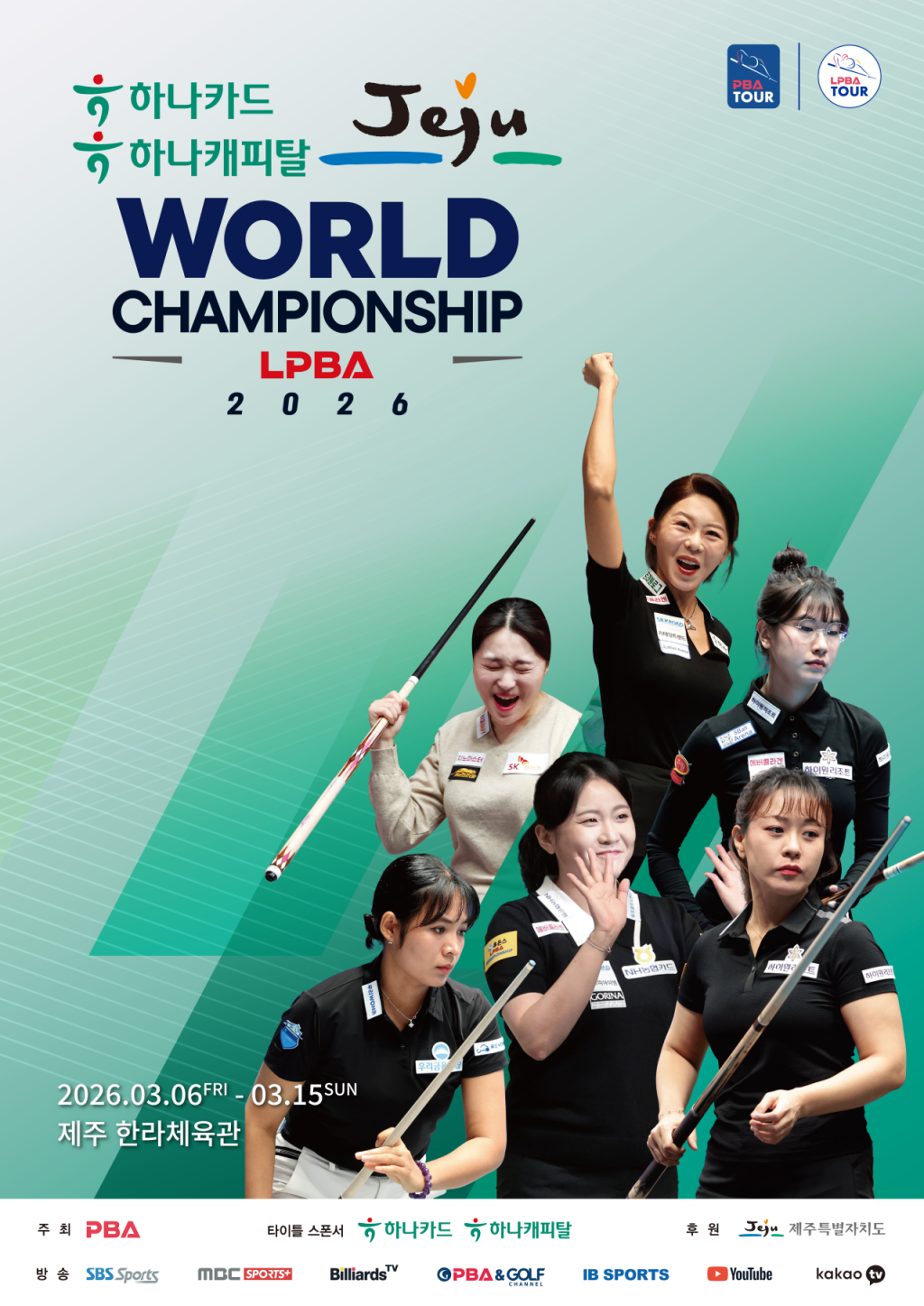 [욜드(YOLD)=조용수 기자] 프로당구협회(PBA)는 6일부터 15일까지 열흘간 제주특별자치도 제주시 한라체육관에서 프로당구 2025-2026시즌 왕중왕전 ‘하나카드 하나캐피탈 제주특별자치도 PBA-LPBA 월드챔피언십’(이하 월드챔피언십)을 개최한다. 올해에도 제주에서 열리는 월드챔피언십은 한 시즌의 모든 정규투어를 마친 후 열리는 ‘왕중왕전’ 격의 대회로, 상금랭킹 상위 32인만 참가할 수 있다. LPBA 우승상금은 1억원이며, 한 경기 최고 애버리지를 기록한 선수에게 주어지는 ‘웰컴톱랭킹’ 상금은 정규투어 대비 2배 늘어난 400만원이다.