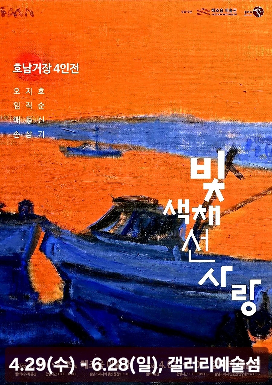 [욜드(YOLD)=조용수 기자] 4월, 거제도 출신 근현대미술 거장 ‘양달석 특별전’ 성황리에 마치고 가정의 달 5월에는 ‘빛, 색채, 선, 사랑-호남거장 4인전’이 예술의 섬에 찾아온다. 2026년 4월 29일부터 6월 28일까지 거제시 일운면 갤러리 예술섬(월화 휴관, 사전 예약 필수. 무료관람)에서 전시하며 해조음미술관, 갤러리예술섬 주최, 예술법인 가이아(주) 기획, 예술섬거제협의회, 주노서 바이오텍(주) 후원이다.