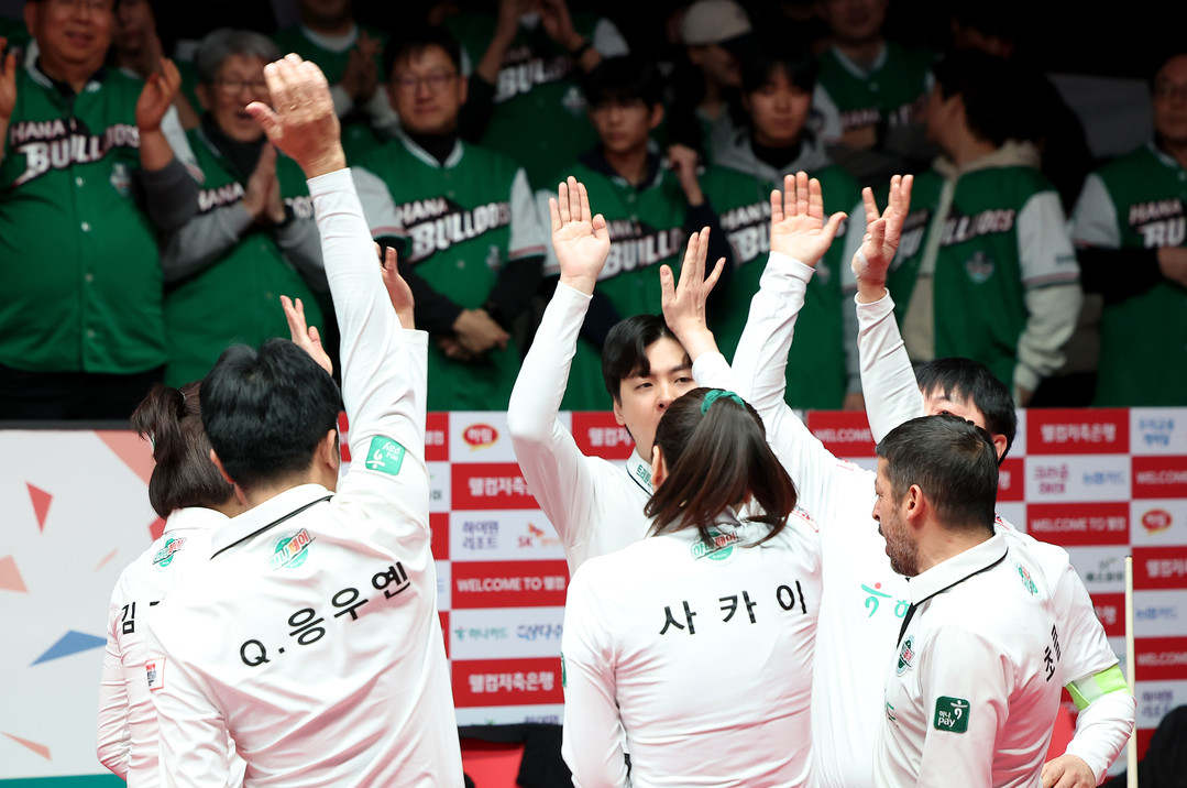 [욜드(YOLD)=조용수 기자] PBA 팀리그 하나카드가 포스트시즌 파이널에서 SK렌터카를 상대로 2승을 선점하며 우승까지 2승만 남겨놨다. 19일 경기도 고양시 ‘고양 킨텍스 PBA 스타디움’에서 열린 ‘웰컴저축은행 PBA 팀리그 2025-2026’ 포스트시즌 파이널(7전 4선승제)에서 하나카드는 SK렌터카를 상대로 1차전과 2차전 모두 세트스코어 4:2로 승리했다. 종합 전적 2승으로 앞서간 하나카드는 우승 확률 80%라는 기분 좋은 수치를 손에 넣었다. 역대 PBA 포스트시즌 파이널에서 2승을 선점한 팀이 우승한 경우는 5번 중 4번에 달한다.