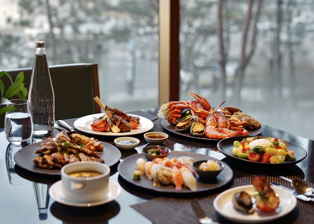 이번 뷔페에서는 다양한 전 세계 요리와 국내 각 지역의 음식을 경험할 수 있도록 제철 식재료들을 이용한 메뉴들을 만나볼 수 있을 예정이다. 시푸드 스테이션에서는 현지 직판장에서 직접 공수해 더욱 신선한 전복, 홍게 등의 해산물을 맛볼 수 있을 예정이며, 그릴 스테이션에서는 랍스터 테일과 양갈비, 부드러운 감칠맛이 일품인 담양식 돼지갈비 등과 함께 최고의 식재료와 조리법으로 한층 업그레이드된 뷔페를 선보일 계획이다. 안티 페스토 섹션에는 ‘비건(Vegan)’ 다이닝 트렌드에 맞춰 건강한 식재료 본연의 맛이 살린 지중해식 메뉴들이 추가되 이국적인 미식여행의 분위기를 더할 예정이다. 병아리콩을 으깨어 야채와 튀겨낸 파라펠과 후무스, 비바 가누쉬 등 비타민과 식이섬유가 풍부한 중동의 대표 비건 메뉴들을 함께 구성했다.